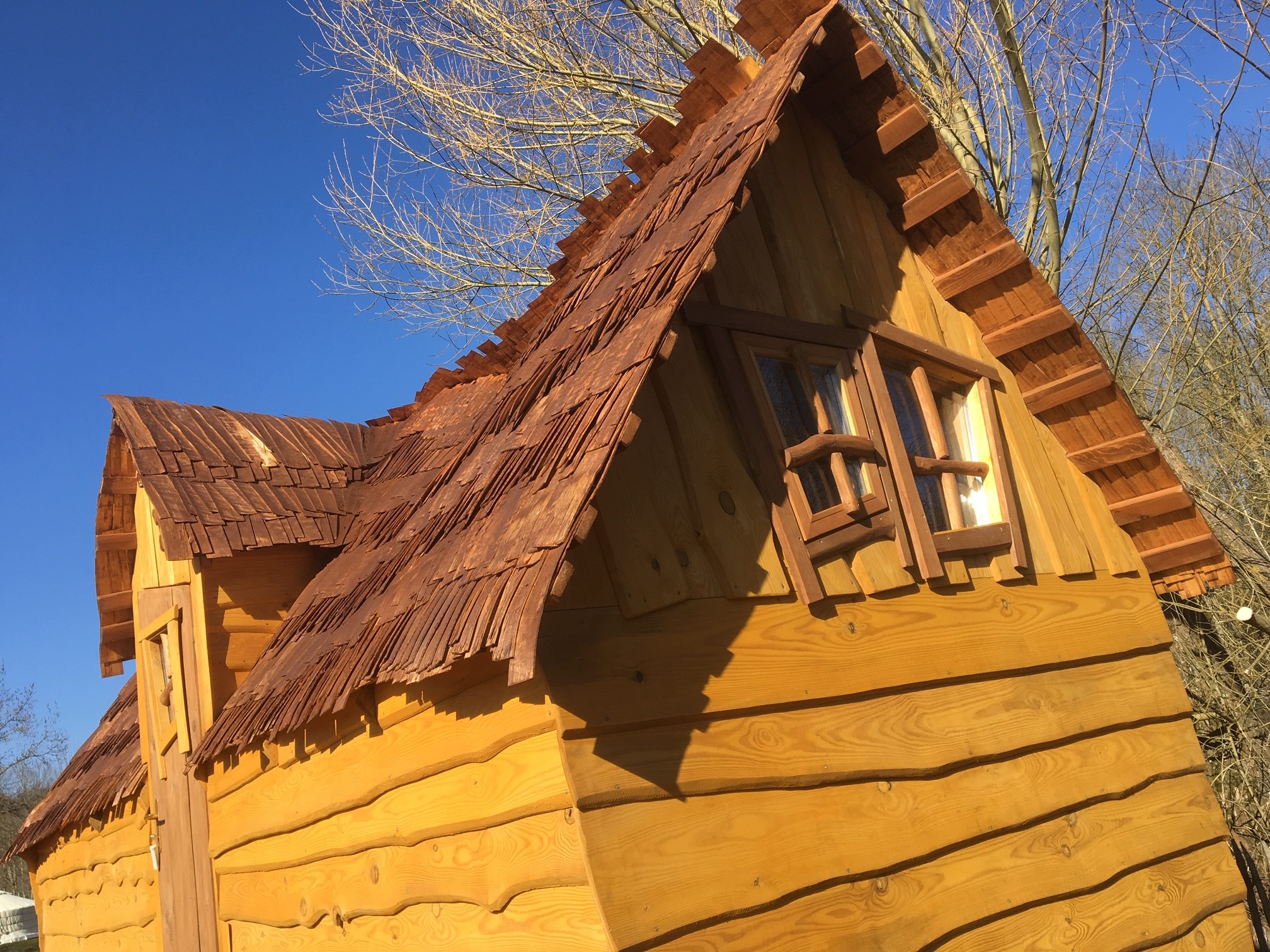 Toute biscornue, avec ses fenêtres de travers, son toit qu’on croirait de pain d’épices, cette cabane est sortie d’un conte pour faire rêver les petits et les grands.